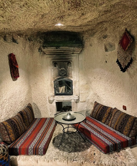 My partner hopped up and opened the curtains across from our bed. We were staying in a cave suite, carved out of a fairy chimney rock formation over 1,500 years ago. These rooms had been hewn out by hand by early Christians who had come to this region to escape Roman persecution.